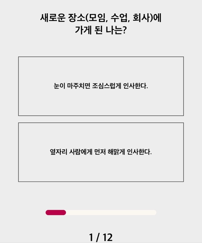 선택하는 내용은 총 12가지 질문으로 구성 되어있습니다~