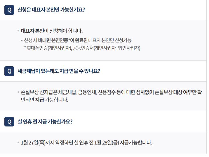 지급 : 약정체결 완료 후 순차적으로 손실보상 선지급금이 지급됩니다.